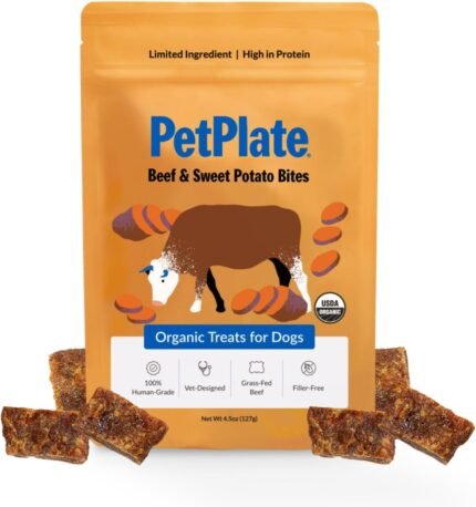 Petplaat rundvlees en zoete aardappelbeten, hondentraktaties voor mensen, alle levensfasen, korrelvrije, organische en echte ingrediënten, hoog eiwitten, gezonde snacks (pakket van 1, 4,5 ounce)