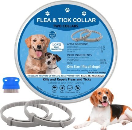 Flea kraag voor honden 2 Pack 16 maanden bescherming Natuurlijke vlooien en tekenpreventie voor honden, een maatfiten voor alle hondenvlooien kraag