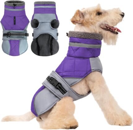 Warm hondenjack – Reflecterende winterjas met verstelbare gesp, winddichte coltrui voering voor kleine tot grote honden (paars, m)