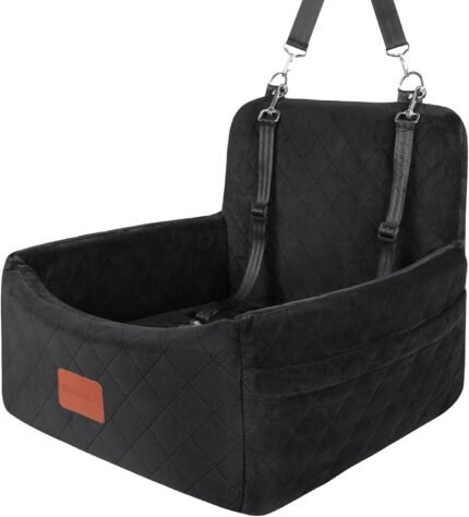 Hondenstoel voor kleine honden onder de 25 pond, wasbaar huisdierenreisbed met traagschuim, afneembare dekking, opbergzakken en veiligheidsriem, niet-slip bodem (zwart)
