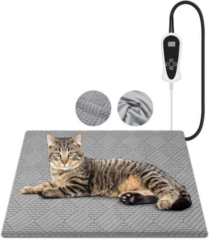 Riakrum 2 stvige pet verwarmingskussen verstelbare kat opwarming kussen waterdichte hondenverwarmde bed elektrische verwarmingsmat met wasbare deksel voor winter in de buitenlucht, digitale timer, anti -bijtkoord (koffie, 17,7 “x17,7”)