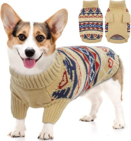 Queenmore Small Dog -trui sweater, kabeldwear met koud weer, klassieke Turtleneck dikke warme kleding voor Chihuahua, Bulldog, Dachshund, Pug, Yorkie (Green, Small)