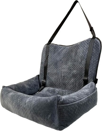 Hondenauto -stoel voor kleine/middelgrote honden, upgrade hondenstoel, afneembare en wasbare autostoelen met een dikke kussenveiligheid riem en opbergzakken (grijs)