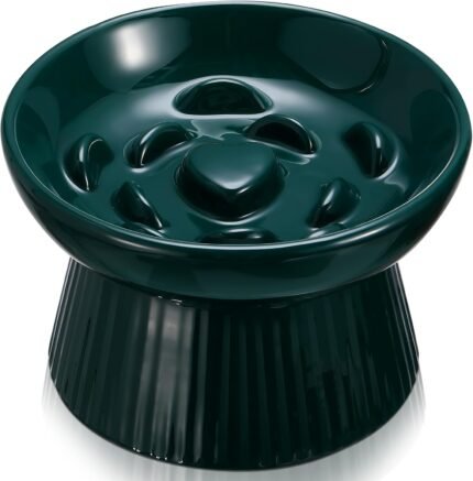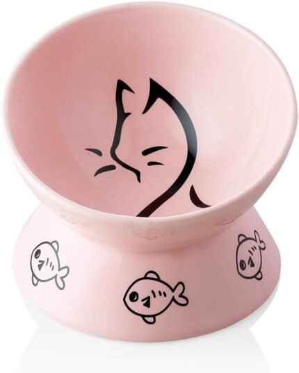 Sweejar verhoogde kattenkom voor droog nat kattenvoer, keramisch verhoogde huisdierschotel, beschermkatten wervelkolom, stressvrij, schuine ontwerp voor kat gemakkelijk eten, 10 oz, vaatwasser veilig (roze)
