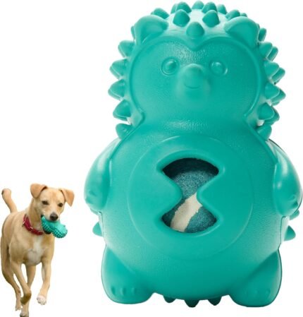 Vrienden voor altijd piepende hondenspeelgoed met tennisbal, taai honden kauwspeelgoed, interactief hondenspeelgoed met natuurlijk rubber, groenblauw hedgehog