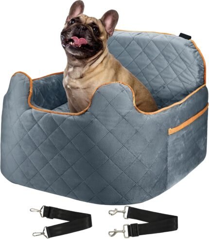 Middenconsole hondenstoel voor kleine honden tot 12 pond, afneembare armleuning PET -autostoeltje, draagbare middelste console hondenboosterauto stoel met verstelbare riemen en opslagzak (zwart, medium)