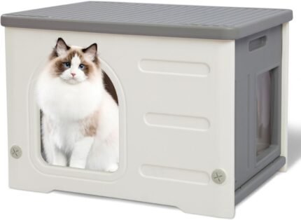 Hicaptain Cat Houses voor binnenkatten met Escape Door Plastic Outdoor Cat House Puppy Feral Cat Shelter for Small Medium Pets-Grey