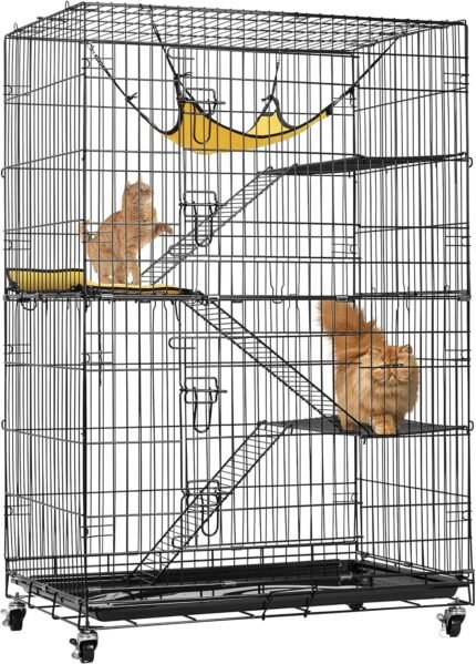 Vivohome 4-Tier 49 inch opvouwbare metalen kat kitten fret kooi 360 ° roterende casters behuizing huisdierspel met ramp ladders hangmat en bed zwart