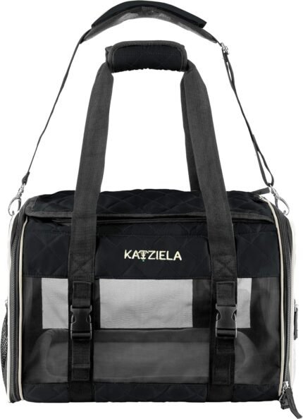 Katziela Deluxe gewatteerde luchtvaartmaatschappij goedgekeurde huisdier- en kattendrager voor vliegtuigreizen (klein, zwart)