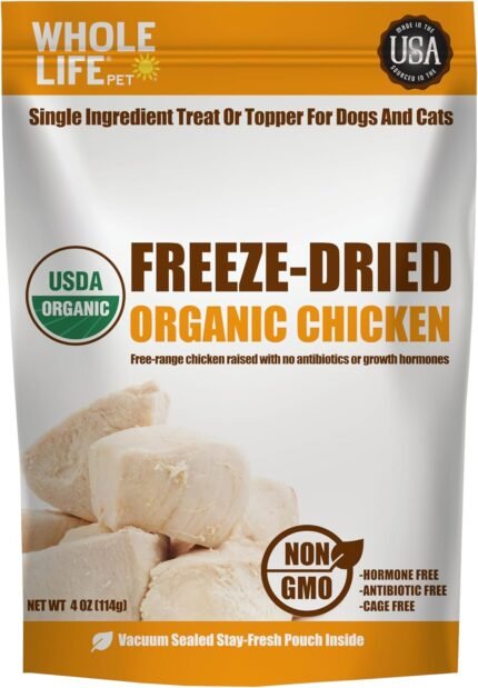 Hele leven PET USDA gecertificeerde organische kip – Dog & Cat Treat of Topper – menselijke kwaliteit, gevriesdroogd, één ingrediënt – eiwitrijk, graanvrij, gemaakt in de VS.