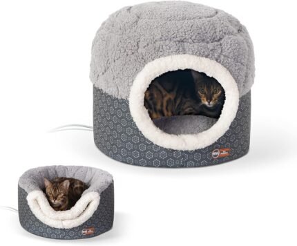 K & H PET -producten Thermo -Kitty Bed Deluxe verwarmd kattenbed voor grote kitties – Verwarmd huisdierenbed voor honden en katten, overdekte grotv -tent, machinewasbaar, Veiligheid vermeld – Grote 20in tan/luipaard