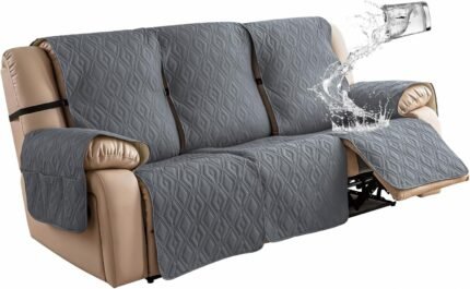 Genina waterdichte bankdeksel voor liggende bank 3 zitplaatsen back-bankafdekkingen, niet-slip ligstoel bankafdekking meubelbeschermer met elastische riemen voor huisdieren, honden (donkergrijze, recliner bank)