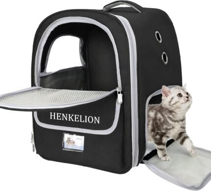 Rugzakdrager met ademende gaas voor kleine middelgrote honden katten puppy’s, huisdierdrager voor wandelen, reizen, buitengebruik – zwart