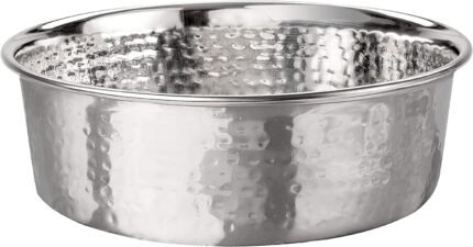 Netter Pet Brands Hammered Decorative Designer Bowls – Luxury Style Premium Dog and Cat Dishes (Groot, Roestvrij)