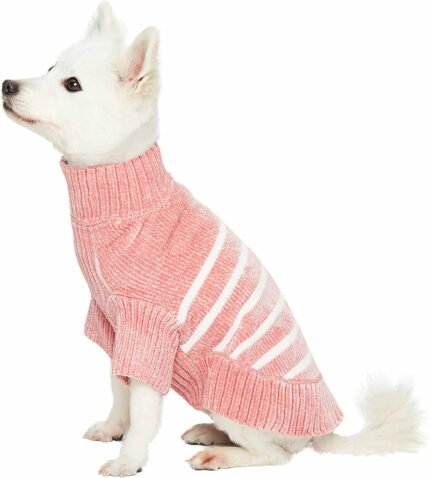 Blueberry Pet Cozy Soft Chenille Classy Striped Dog Sweater in Dusty Rose, Achterlengte 12 “, Roze kleding voor honden