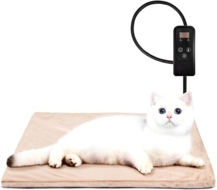 Patiencet Verwarmd kattenbed, 18 ” x 28 ” Temperatuur Verstelbare kattenhondenverwarmingspad met timer binnen, huisdierverwarmingskussen voor kattenhonden, kattenverwarmingsbladen met metalen kauwbestendig koord