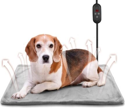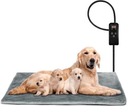 Pet Heating Pad – 6 Verstelbare temperatuur Dog Cat Pad met timer, binnen voor honden, kauwbestendig koord, grijs, 28×16 in