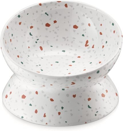 Verhoogde langzame voeder Cat Bowl – Verhoogd gekantelde keramische kattenvoerschotel – breed, snorvriendelijk, anti -hangende – vaatwasser en magnetron veilig – 6 inch