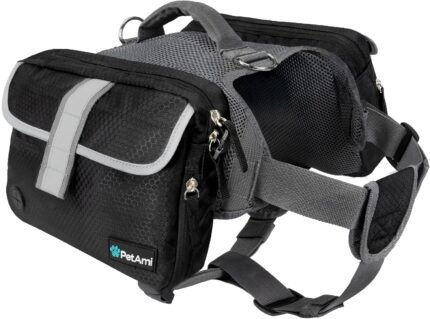 Petami Dog Backpack Saddle Bag voor middelgrote grote honden, hondenzadeltas voor honden om te dragen, gebruik van zadeltassen voor wandelen met reflecterende veiligheidszakken, vest hondenpakket voor kampeerreizen (zwart, medium)