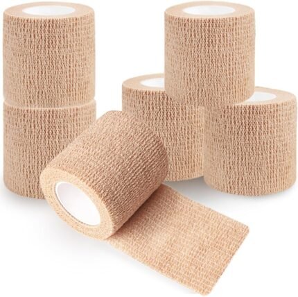 Qumy zelfklevend verbandomslag 6 pakket, 2 inch x 5 yards samenhangende ademende niet-geweven dierenarts tape voor huisdieren, hondenbandschoenen, wond EHBOE GAAGE voor hond, paard, kat, elastische wrap voor enkel, sport
