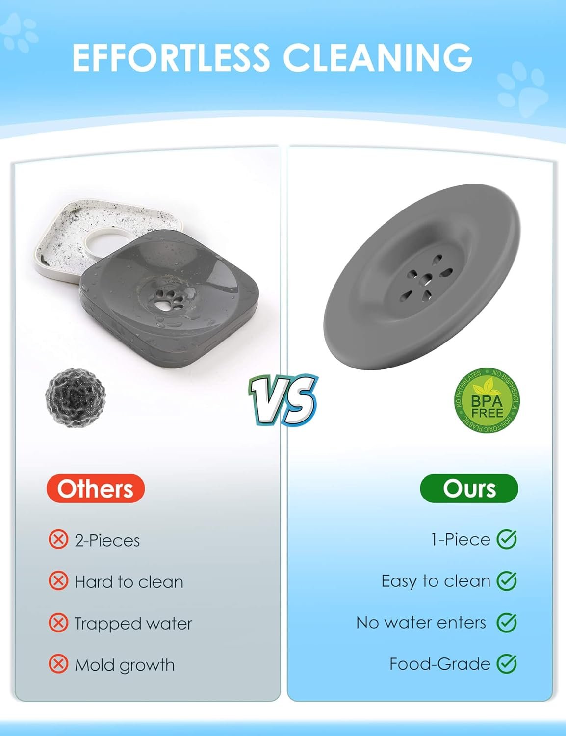 【Een stuk gevormde drijvende schijf】 Naast deksel gaat de kom ook met een drijvende schijf om het water te vertragen, ook om te voorkomen dat stof, vuil en huisdierhaar in het water vallen. Wat meer is, het is een opgewaardeerde een stuk gevormde drijvende schijf, geen water kwel, nooit beschimmeld of vies, niet nodig om open te wruingen voor het reinigen.