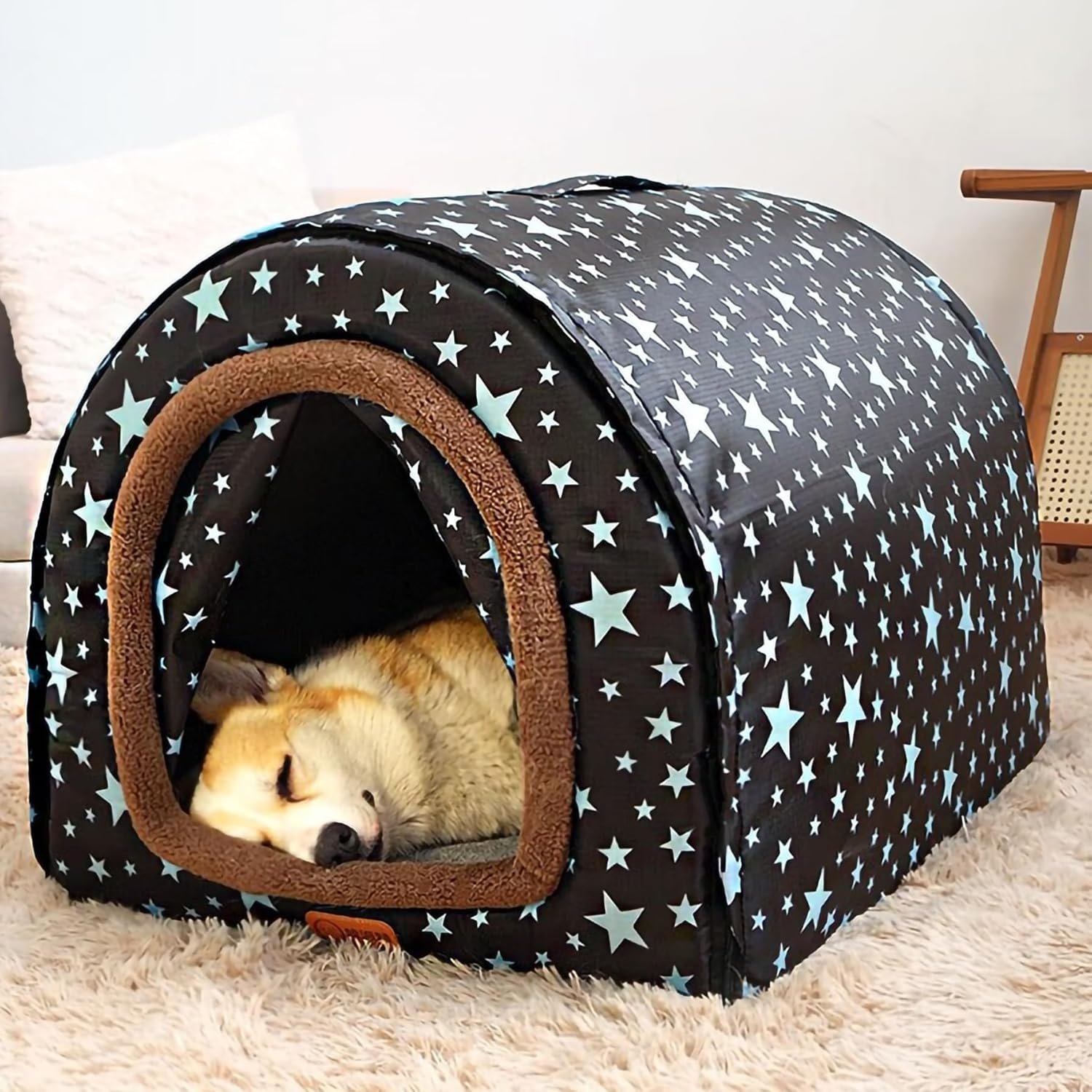 2 in 1 extra grote huisdier Winter House Convertible to Bed met warme kussenmat, 2 -weg indoor buiten draagbare hondenkennel, verwijderbare wasbare deksel (XL Starry Sky)