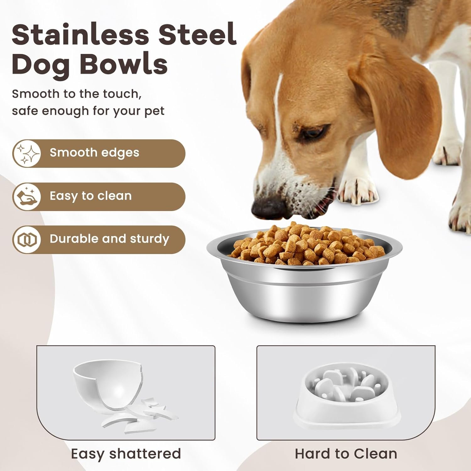 Gemakkelijk schoon te maken: het oppervlak van de hondenvoerkom is plat en glad, waardoor het heel gemakkelijk te reinigen is. Bij het reinigen van de roestvrijstalen huisdierenkom, kunt u het wasmiddel aanbrengen en deze handmatig spoelen met water, of u kunt een vaatwasser gebruiken om deze schoon te maken, wat gemakkelijker en sneller is, terwijl u uw tijd en energie bespaart.