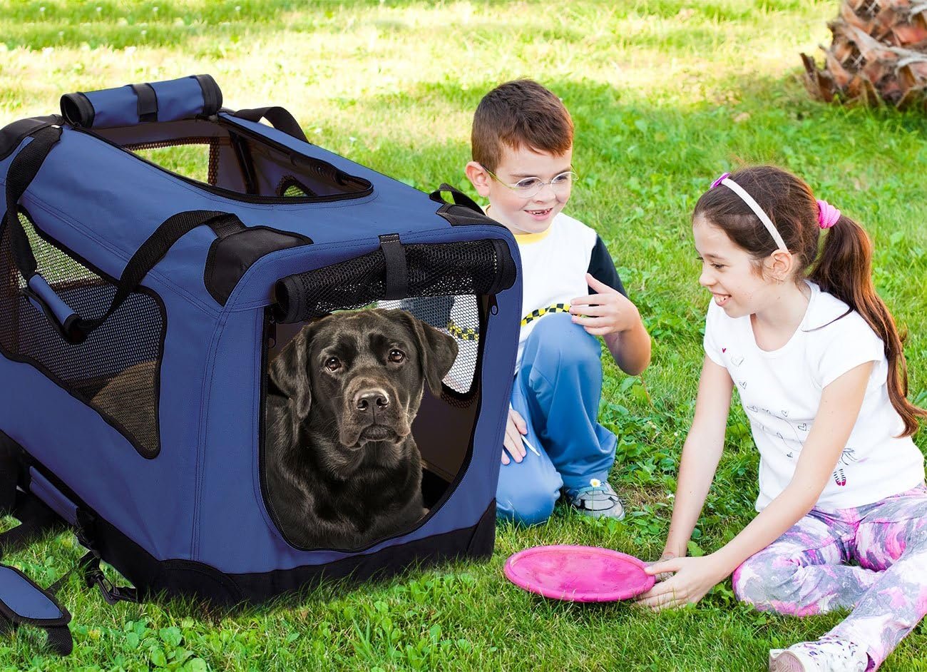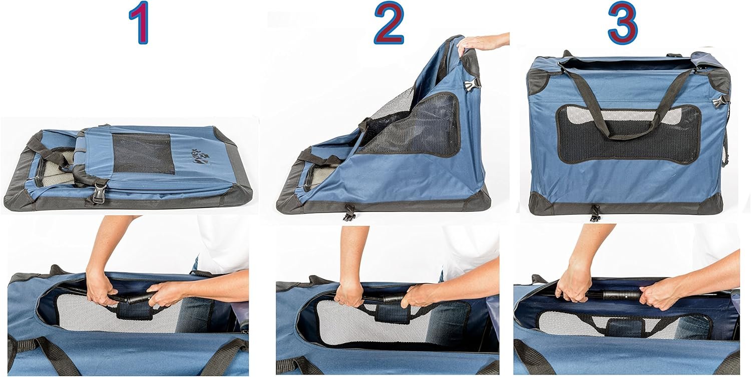 2pet opvouwbare hondenkrat – Zacht, gemakkelijk te vouwen en te dragen hondenkrat voor binnen- en buitengebruik – Comfy Dog Home & Dog Travel Crate – Strong stalen frame, wasbare stofomslag, frontale rits XL Blue