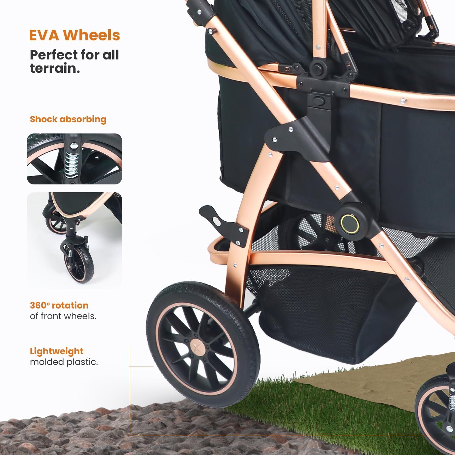 3 In 1 Pet Stroller – Wandelwagen voor kleine tot middelgrote honden en katten tot 50 lbs, met afneembare drager/autostoeling, opvouwbaar en lichtgewicht, afneembare kussen + bekerhouder (zwart/goud)