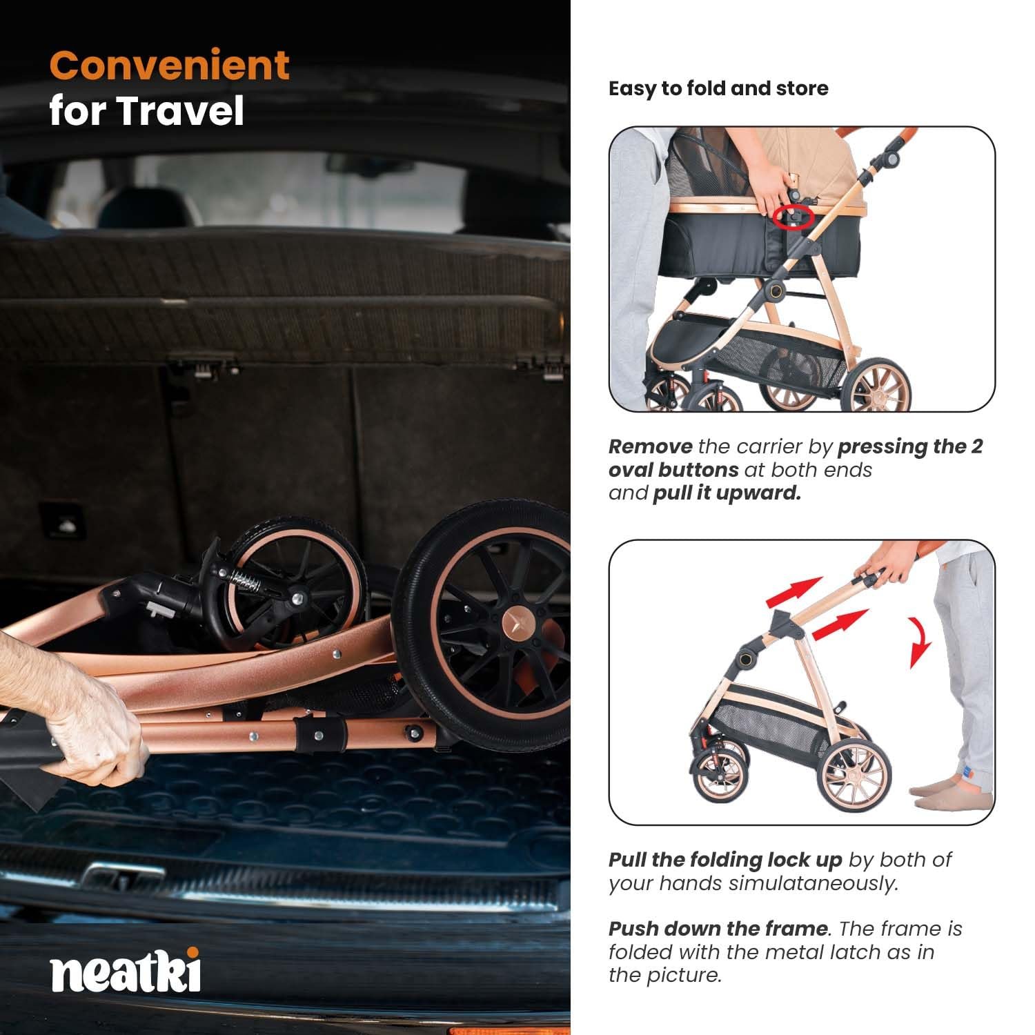 Multifunctioneel ontwerp-Schakel moeiteloos over tussen een kinderwagen, drager en een autostoeltje voor ultieme veelzijdigheid. Deze honden- en kattenkweker met een verwijderbare drager verbetert elk avontuur voor dagelijkse wandelingen of handige reizen.