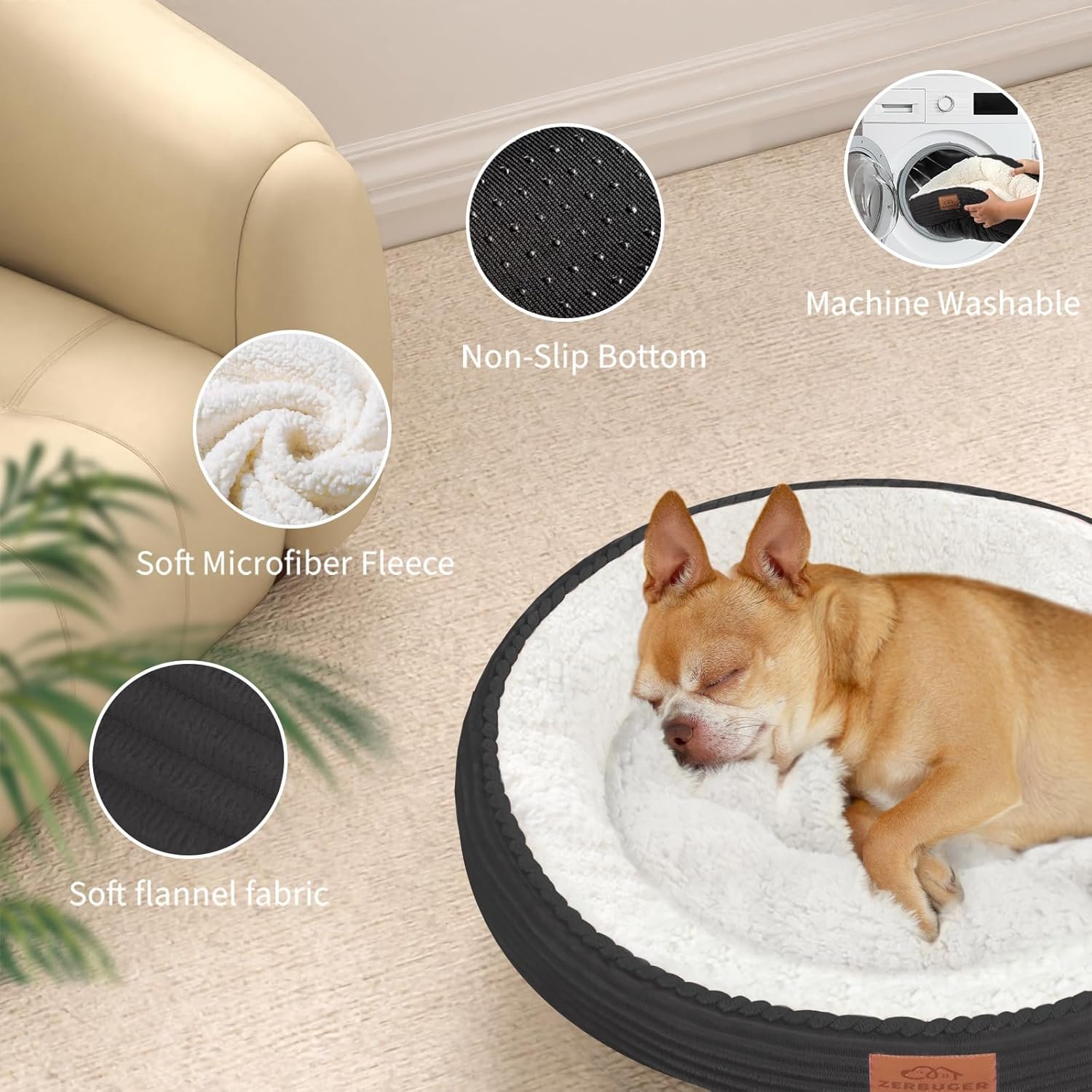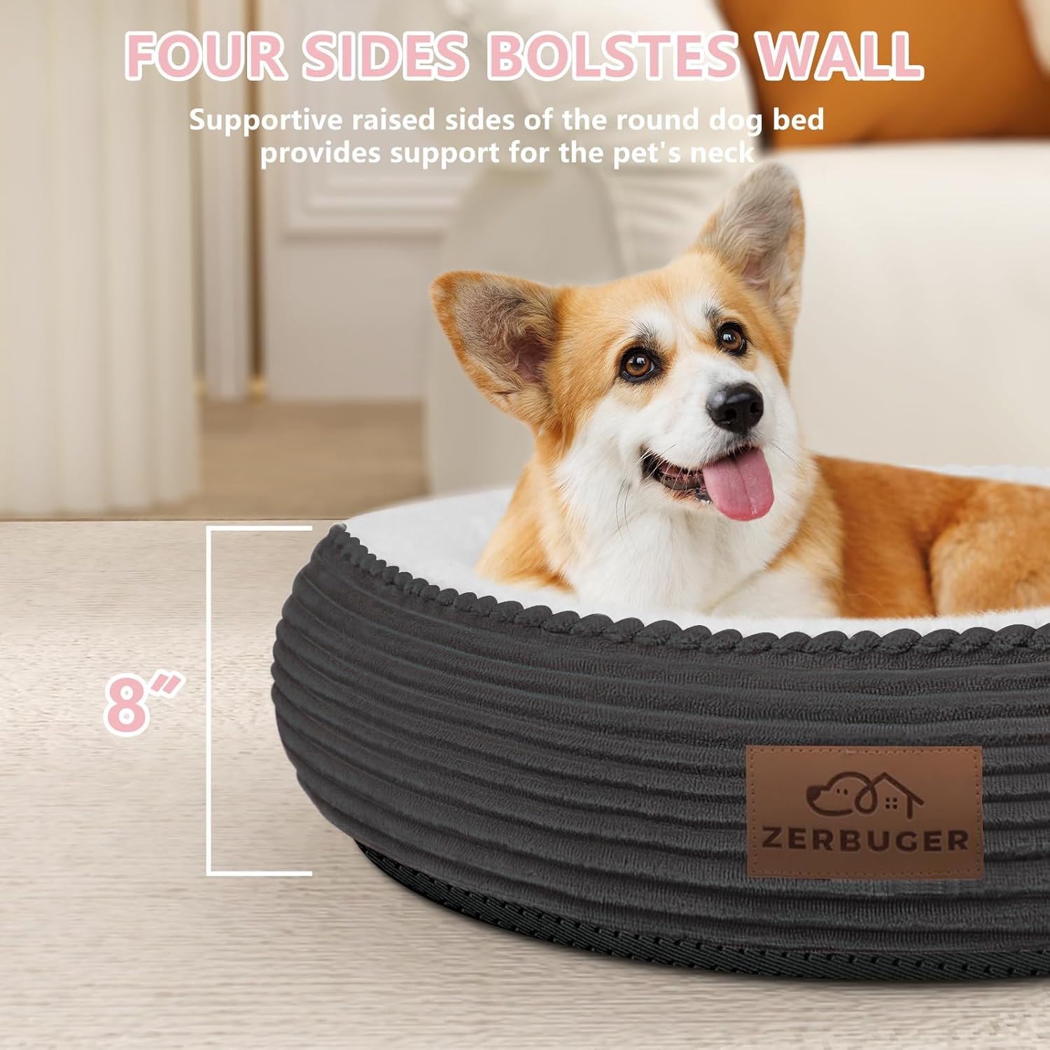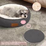 Gezellig en veilig ronde bed: de cirkelvormige bolster van ons 30 -inch hondenbed biedt ongeëvenaard comfort en een gevoel van veiligheid. Het schattige huisdierenbed biedt niet alleen fysieke ondersteuning, maar voegt ook een vleugje luxe toe. Het is royaal gevuld om het hoofd en de nek van je huisdier te wiegen, waardoor ze zich kunnen nestelen op elke manier die ze willen voor een echt rustgevende slaap.