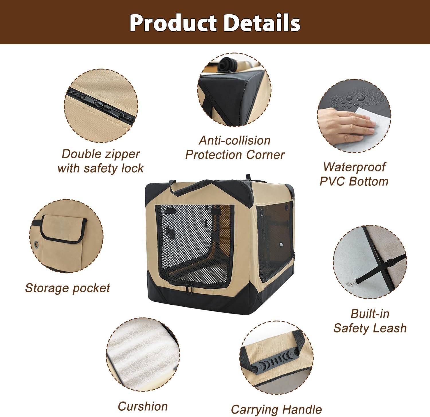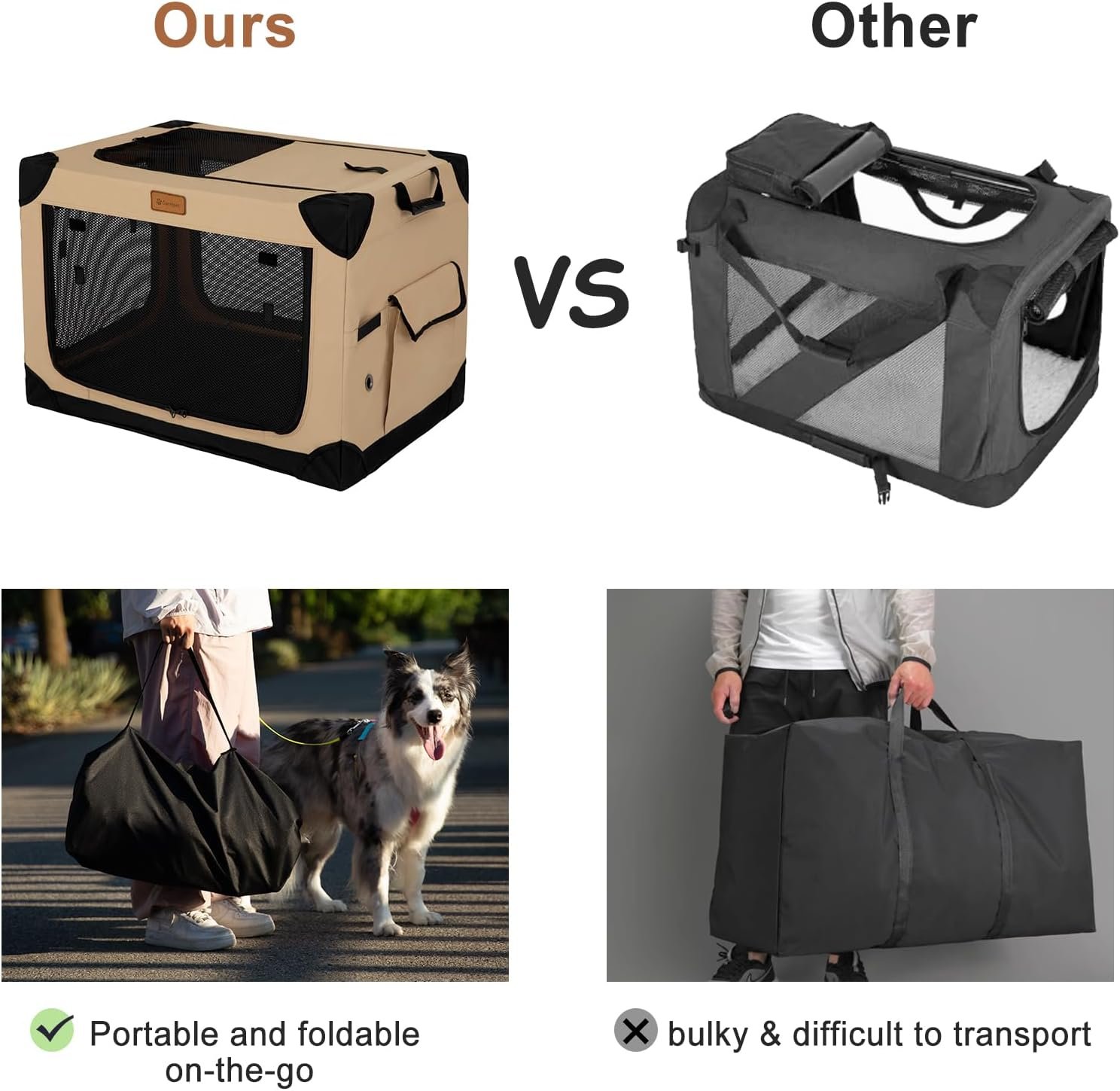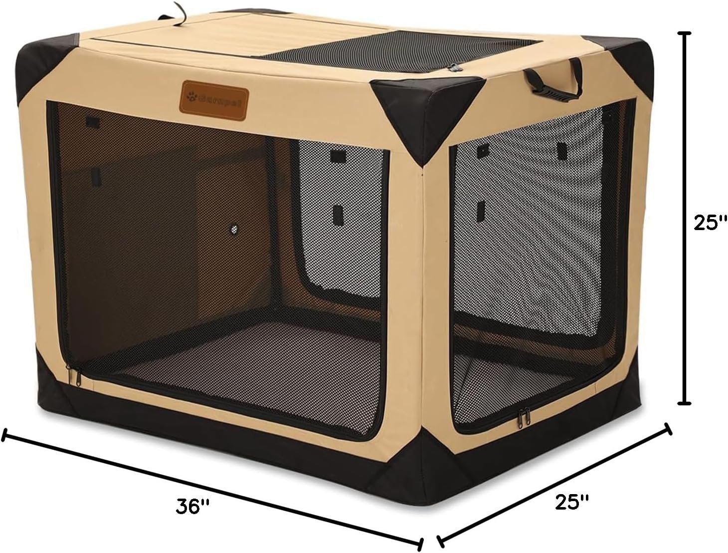 36 inch inklapbare zachte hondenkrat voor grote honden, 4-deurs opvouwbare reishondenkennel met duurzame maasramen voor binnen- en buiten draagbare huisdierkist, zachte zijdehond krat, beige