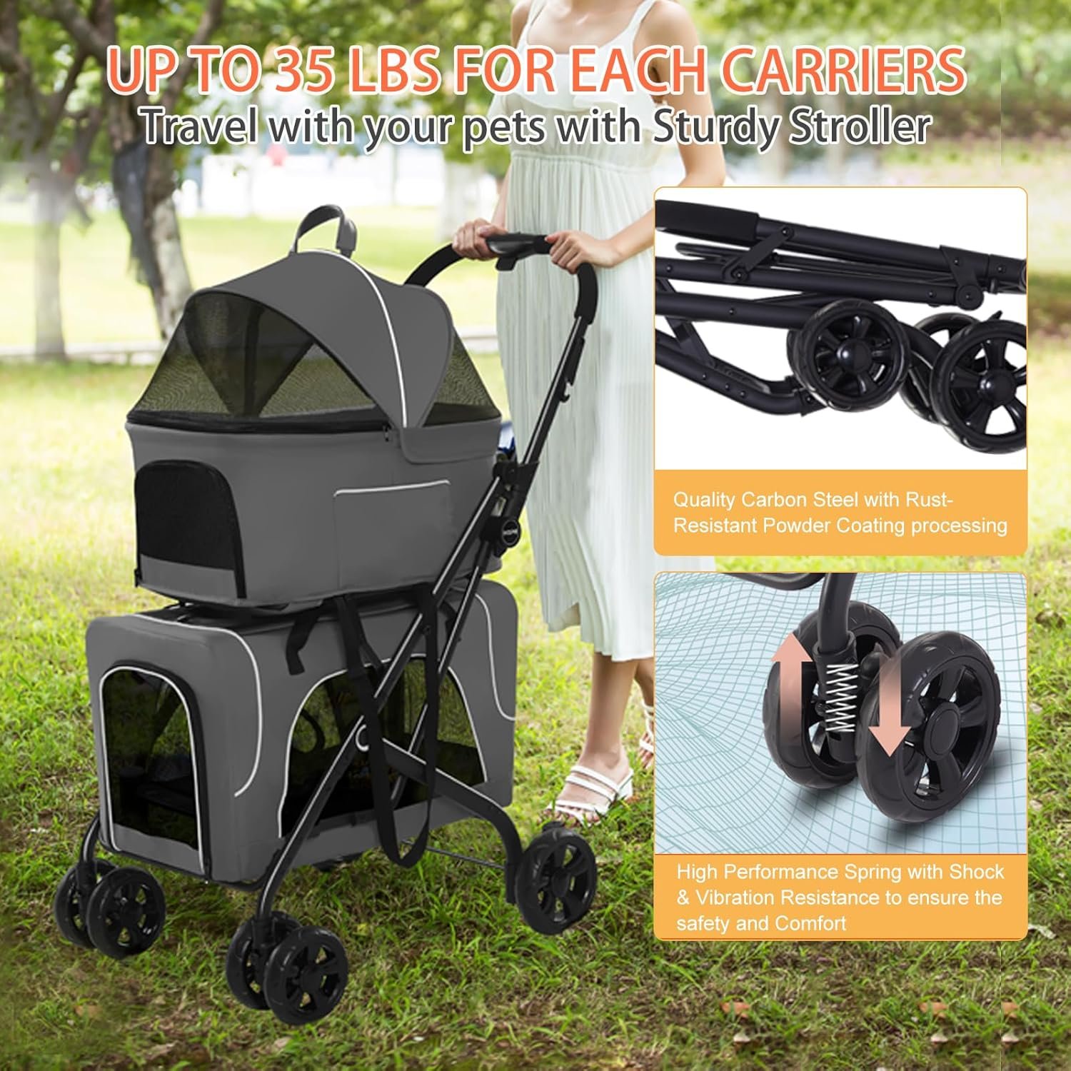 【2 x 35 lbs Gewichtsteun】 De kinderwagen-kinderwagen heeft twee laagdragers (tas en mand) en duurzaam koolstofstaalframe met een anti-reuzencoating. En zorgen voor comfort en veiligheid voor uw huisdieren. Geschikt voor kleine honden en middelgrote katten voor reizen/wandelen/roamming. De dubbele drager en tas zijn ontworpen in niveaus, die tegelijkertijd twee 35 lbs huisdieren voor elke drager/tas kunnen huisvesten.