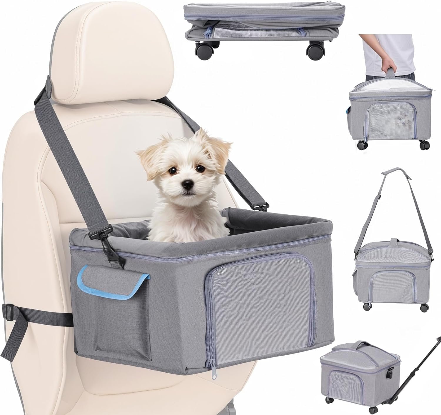 4-in-1 kat autostoeltje en kattendrager met verwijderbare wielen booster autostoelen voor kleine honden katten worden geleverd met schouderband clip-on veiligheid aanrichting en verdikte kussens, pet reisdrager bed tot 15 pond