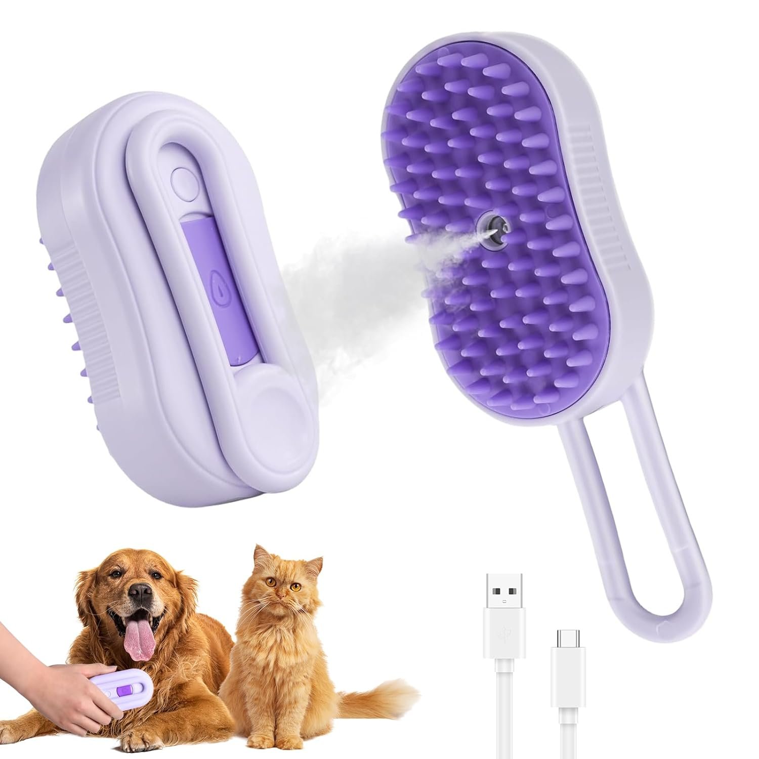 4 In 1 kat stoomborstel voor het afwerpen van, oplaadbare huisdier stoom trimmerborstel, massage, reinigen, afwerpen en kammen multifunctionele combo voor katten voor katten (paars)