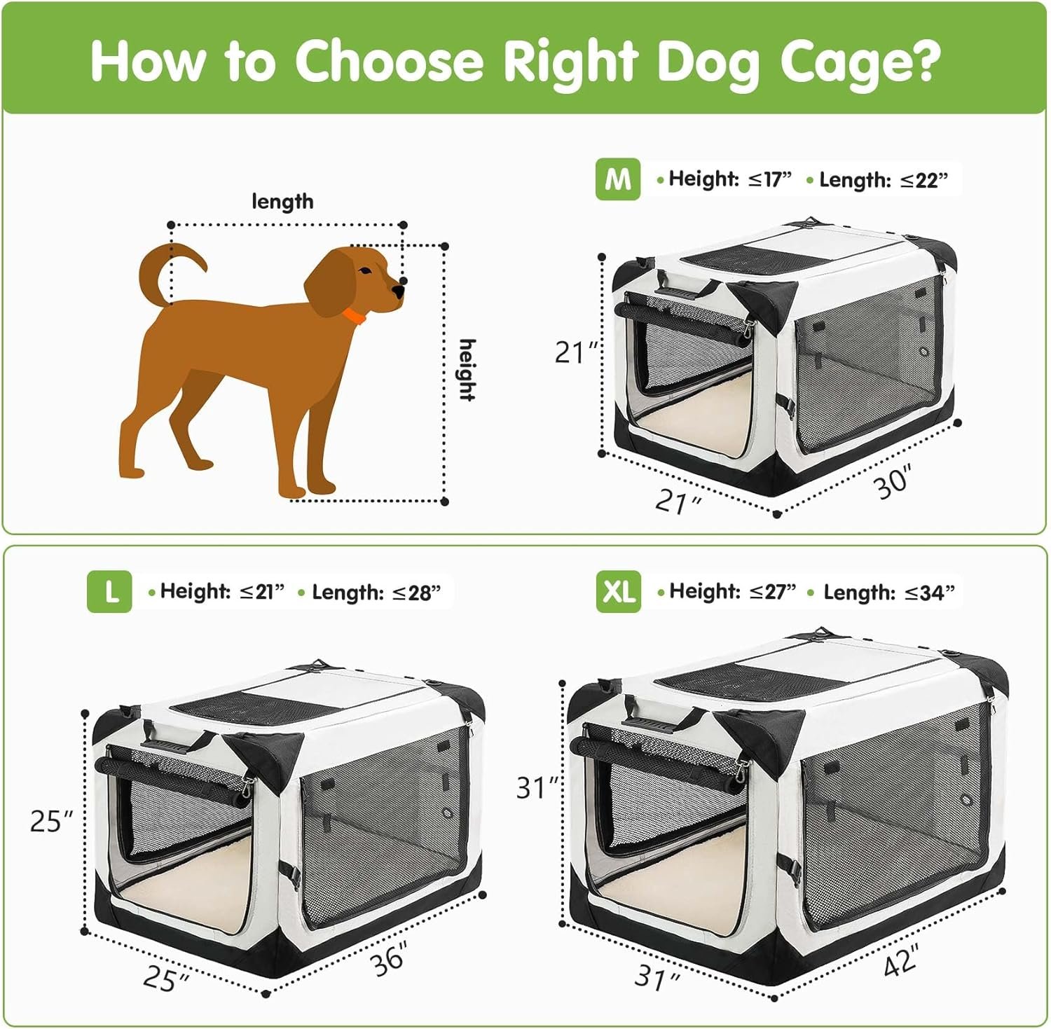 Verschillende maten om te kiezen – deze hondenkennel -indoor is beschikbaar in drie maten. Kies uit M: 30 ” × 21 ” × 21 ” (tot 50 pond), L: 36 ” × 25 ” × 25 ”; (tot 70 pond) en XL: 42 ” × 31 ” × 31 (maximaal 90 pond) om de perfecte krat voor uw huisdier te vinden. Meet de hoogte en het gewicht van uw huisdier voordat u wordt geplaatst.