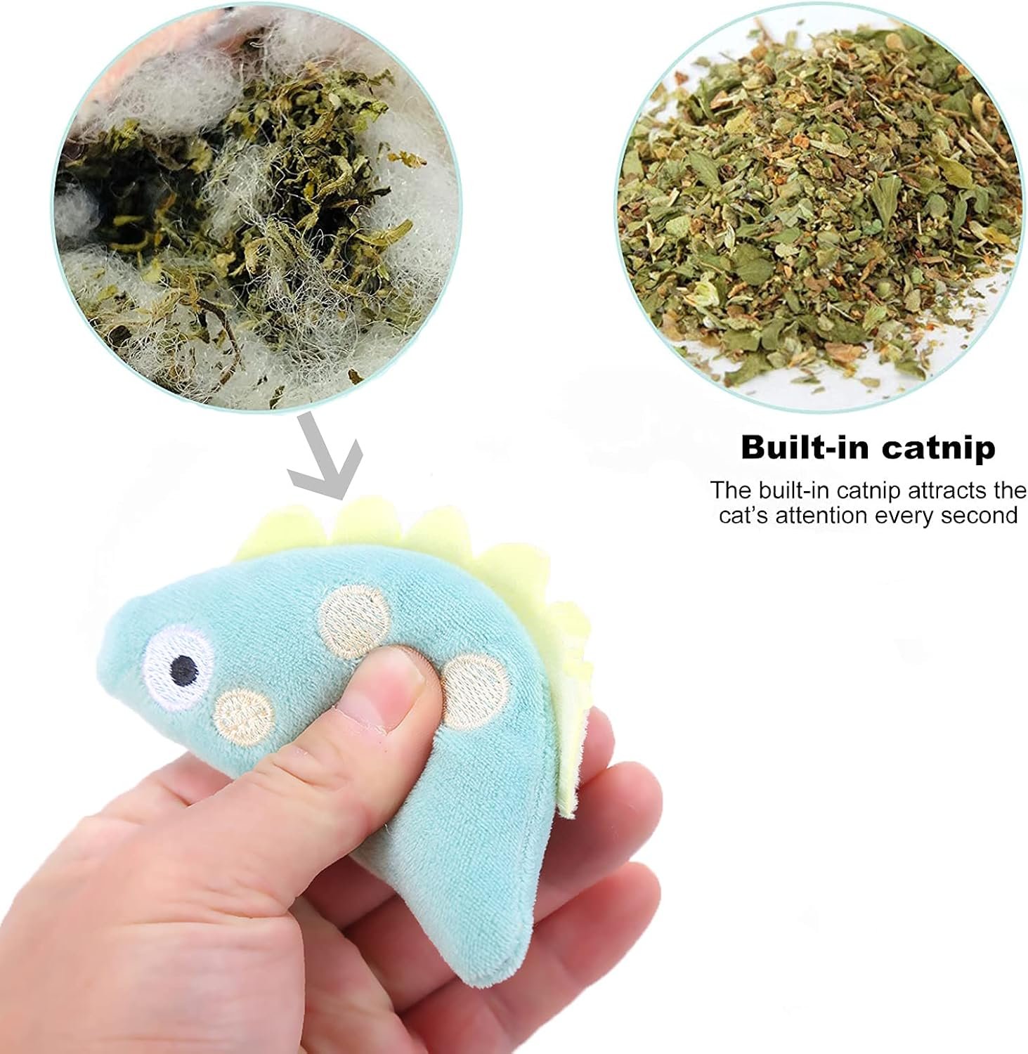 ????Safe materiaal-het kittenspeelgoed binnen is gemaakt van pluche materiaal van hoge kwaliteit, gevuld met zacht PP-katoen en natuurlijke kattenkruid, wat niet gemakkelijk te vervormen is en de slijtage op het tandvlees van de kat vermindert