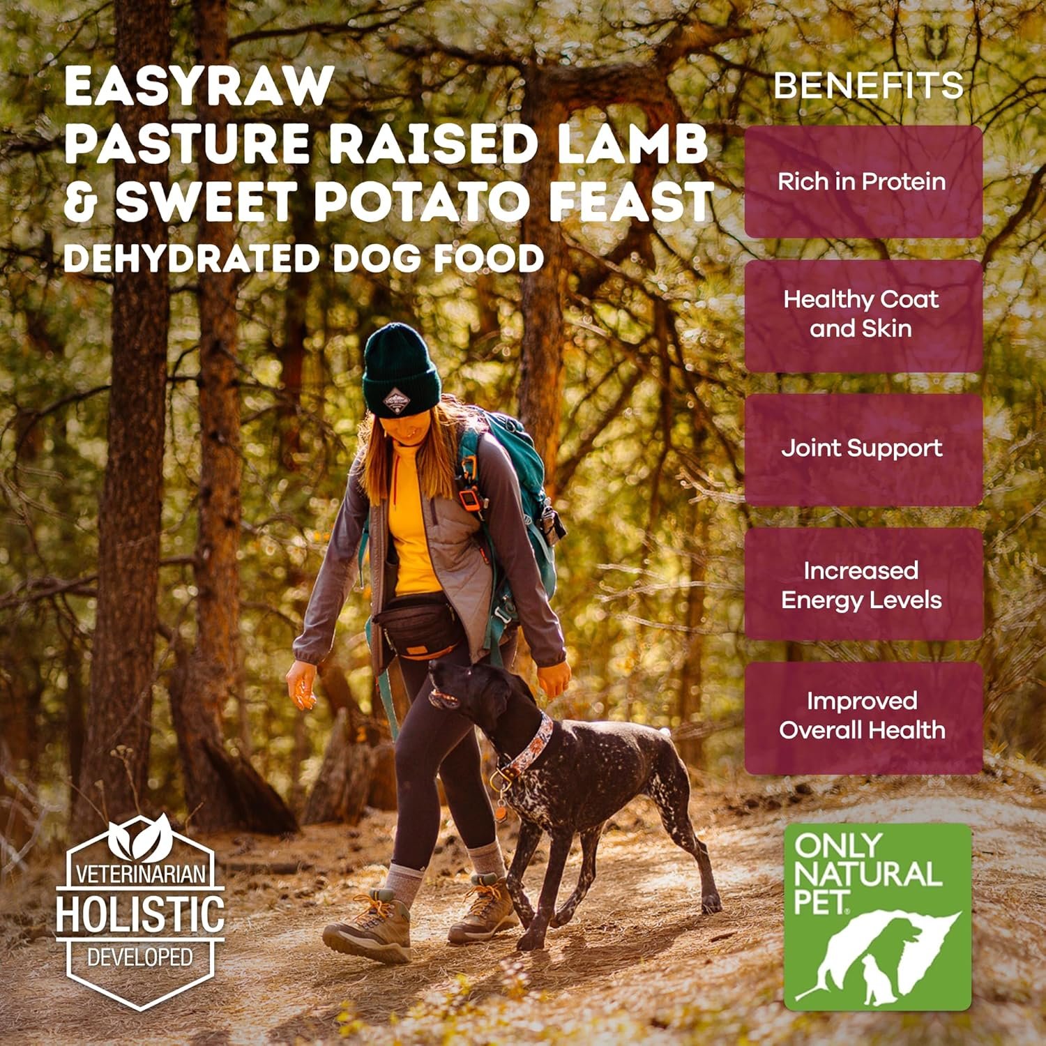 Alleen natuurlijk huisdier – Easyraw uitgedroogde rauwe hondenvoedselformule, bevat echte gezonde voeding, lage glycemie, paleo -vriendelijk, niet -GMO – lam en zoete aardappelsmaak – 2 lb zak (maakt 10 lbs) -l2
