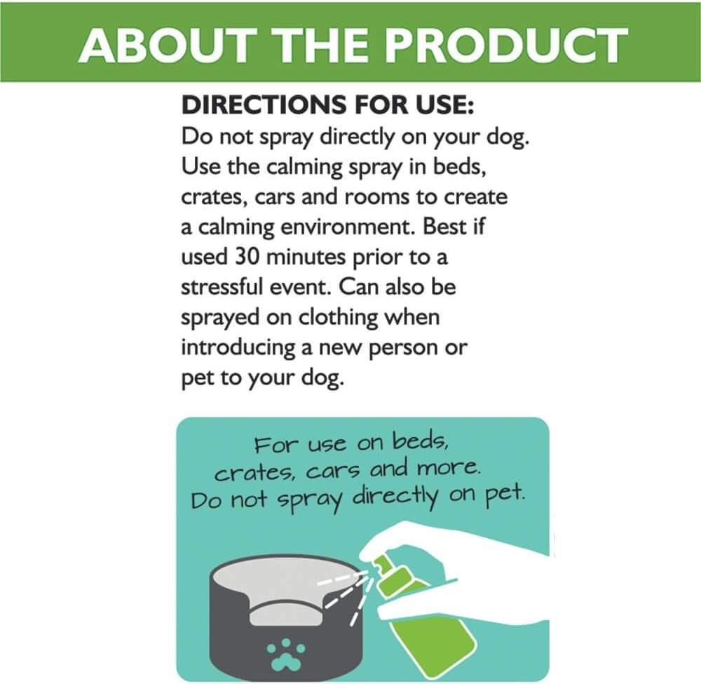 Gemakkelijk te gebruiken – 3.4 FL Oz Spray -fles. Spuit gewoon bedden, kratten, delen van de auto of hele kamers en laat de botanicalen het angstige gedrag van uw hond op natuurlijke wijze kalmeren. Het 3 -pakket is ideaal om extra’s te hebben om in meerdere kamers en in de auto te bewaren.