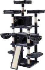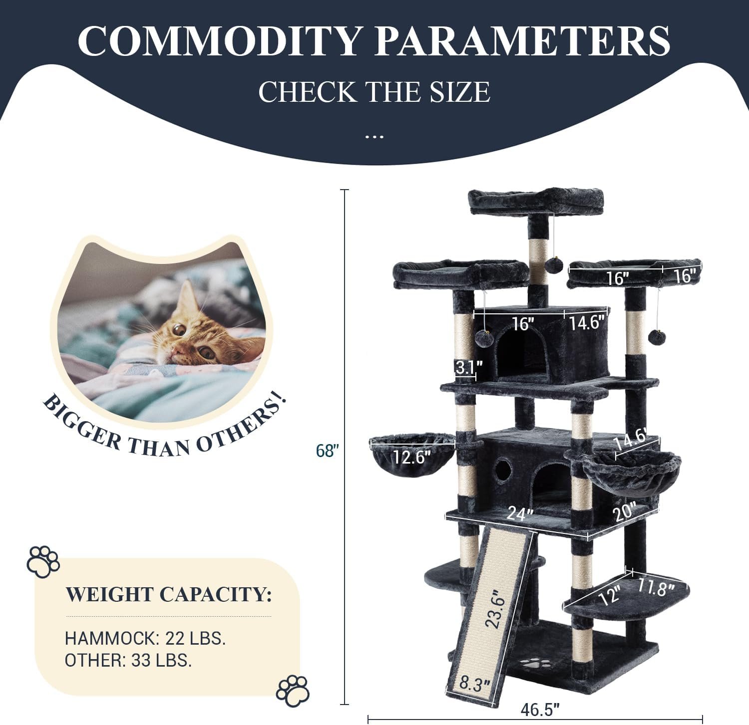 Allewie 68 inch kattenboom/huis en torens voor grote kat/krabbenpaal/multi-level grote kitty klimboom met appartement/rokerig grijs