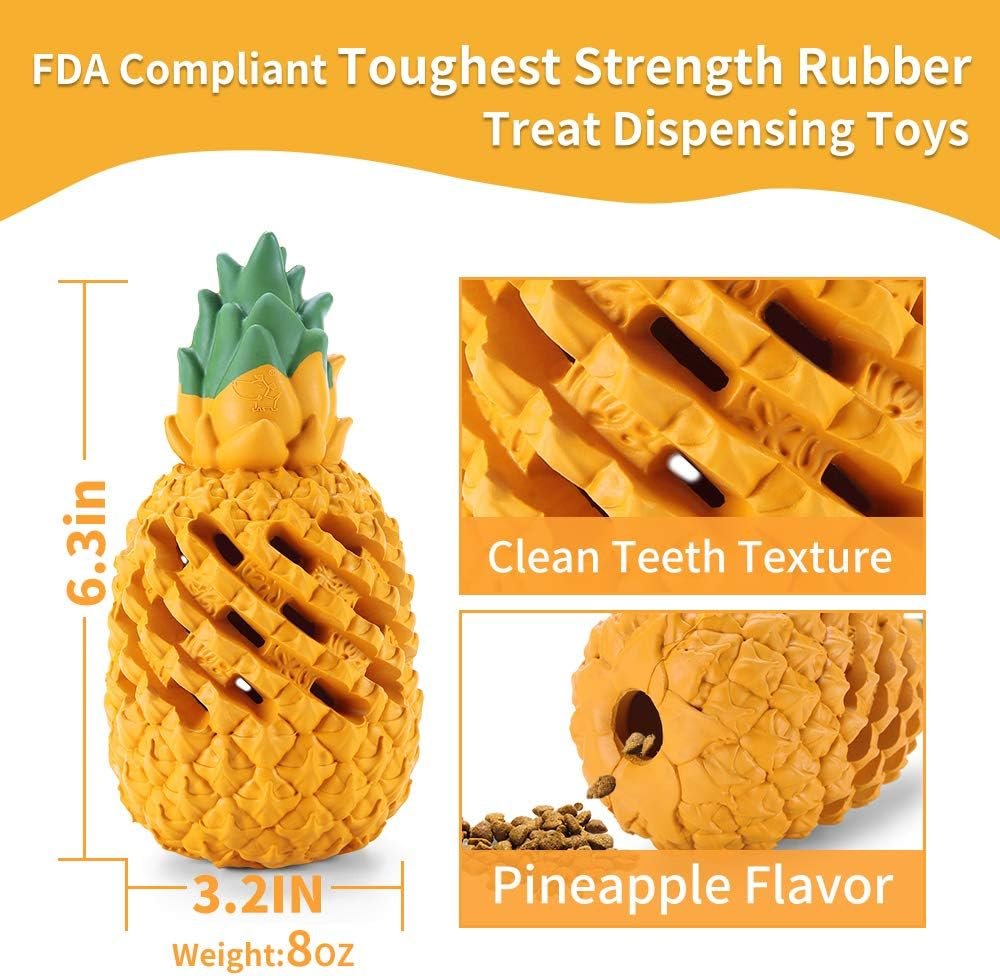 Veilig unieke holle holle ananasvorm en smaakontwerp: gemaakt van natuurrubber niet-toxisch met verleidelijke ananas gearomatiseerd, aantrekkingshond om te kauwen en te spelen, het verhoogde textuur van speelgoed reinig de tanden van uw hond goed, stimuleer tandvlees en vermindert tartar