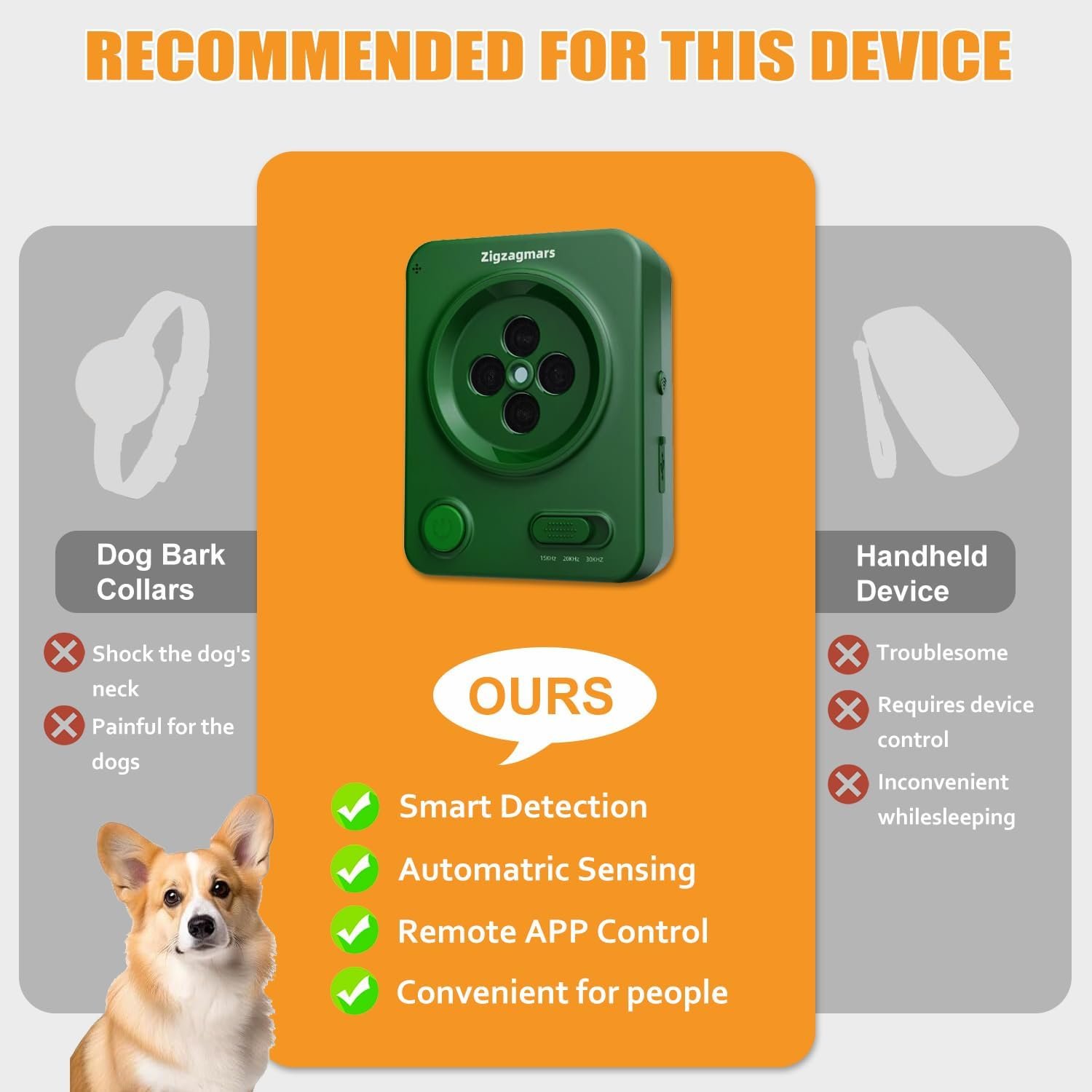 Effectiever dan hondenschors kraag – onderwerpen uw hond niet aan de pijnlijke schok van een hondenschorskraag. Zigzagmars ultrasone besturingsapparaten combineren SMART Detectie Auto-bedieningsmodus met app Remote Remote Ultrasone Mode (15-30 kHz) om te stoppen met blaffentechnologie voor gelukkiger buren, rustgevende slaap en een goed gedragen pup! Het beste alternatief voor een schorskraag, hondenschokkraag en schorsdozen.