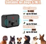 3 Modi Hondenschors afschrikkende apparaten: het anti-blaffende apparaat is geschikt voor honden van verschillende maten en heeft drie modi. Mode 1: 15-30 kHz ondeugende of grote hond. Modus 2:20 kHz voor volgzame honden. Modus 3:30 kHz voor kleine honden