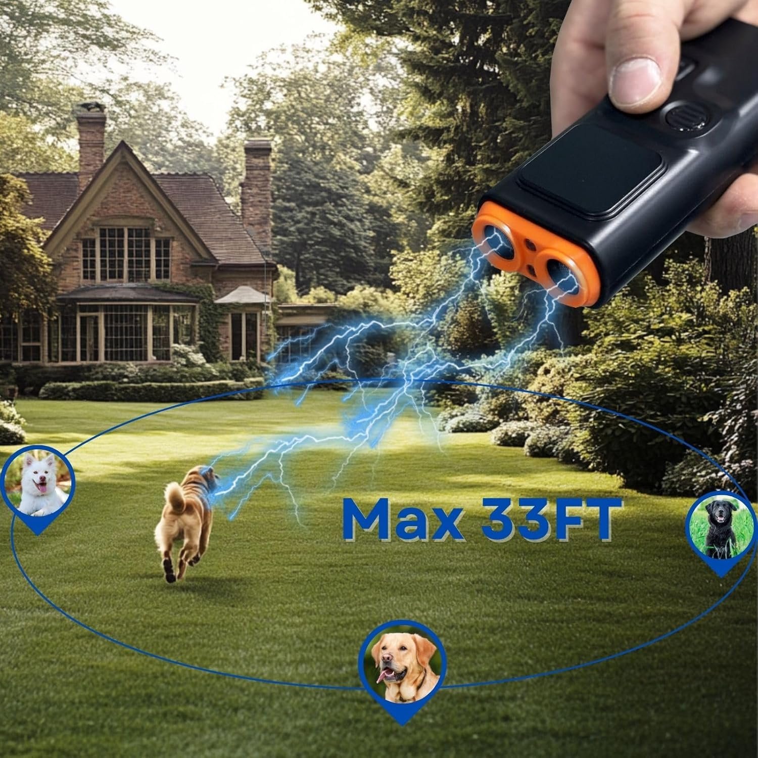 Veilig voor honden: straalt onschadelijk maar verstorende geluiden en lichten uit die blaffen ontmoedigen zonder fysieke schade of pijn te veroorzaken.