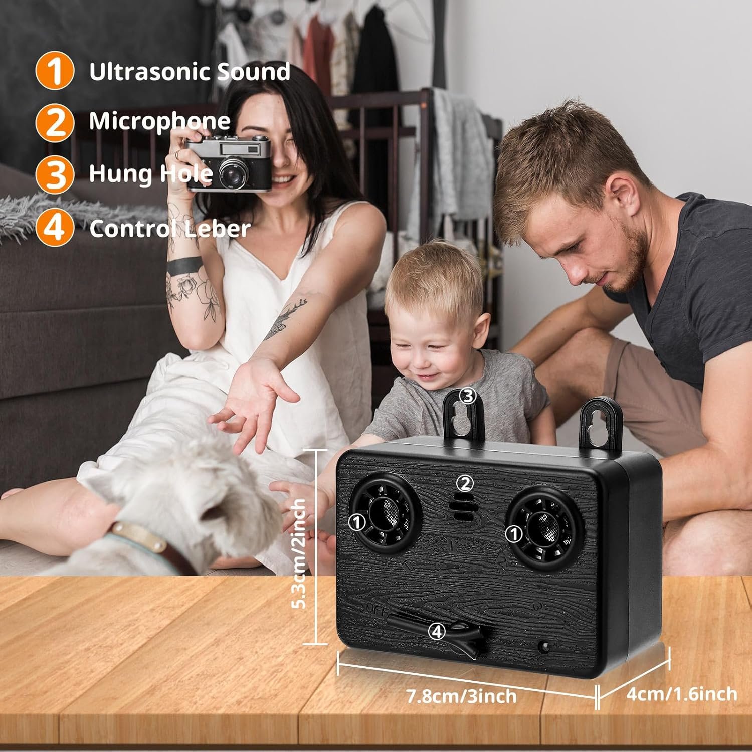Effectief in het beheersen van overmatig blaffen, ideaal voor appartementen, condominiums of huizen met nabijgelegen buren, kunnen we het op de muur, hek of boom plaatsen, elke locatie binnen of buiten kan zijn geluidsgolven tot 50 ft, de hond van uw buurman of zelfs zwervende honden van barkinend.