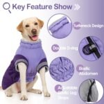Elastisch buikontwerp voor knusfit: de hondentruien voor grote honden heeft zeer elastische riemen aangenomen op de buik, die zorgt voor een veilige en aangepaste pasvorm. En de elastische band voor het repareren op benen zorgt voor een comfortabele draagervaring voor hond