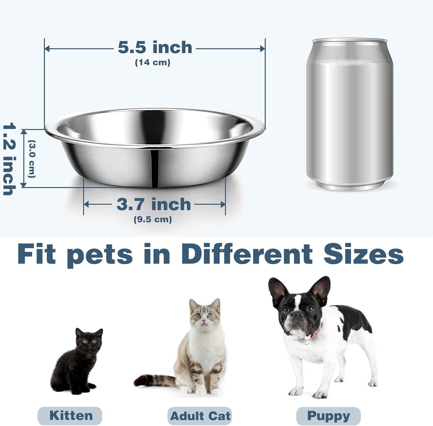 Arespark roestvrijstalen kattenkommen 12 pc’s, 5,5 inch metalen kattenkommen, vervangende verhoogde voedselwaterkommen voor binnenkitten, snelkoppeling Vermoeidheid Relief ondiepe voedsel metaalgerecht voor zwerfkatten