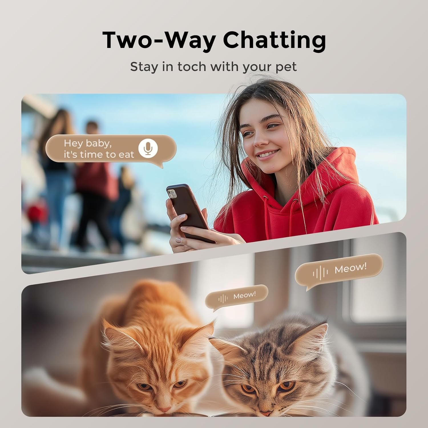 Ingebouwde HD-camera: de automatische kattenvoerder met camera houdt uw huisdier in de gaten; Bekijk live -voedingen en leg memorabele momenten vast