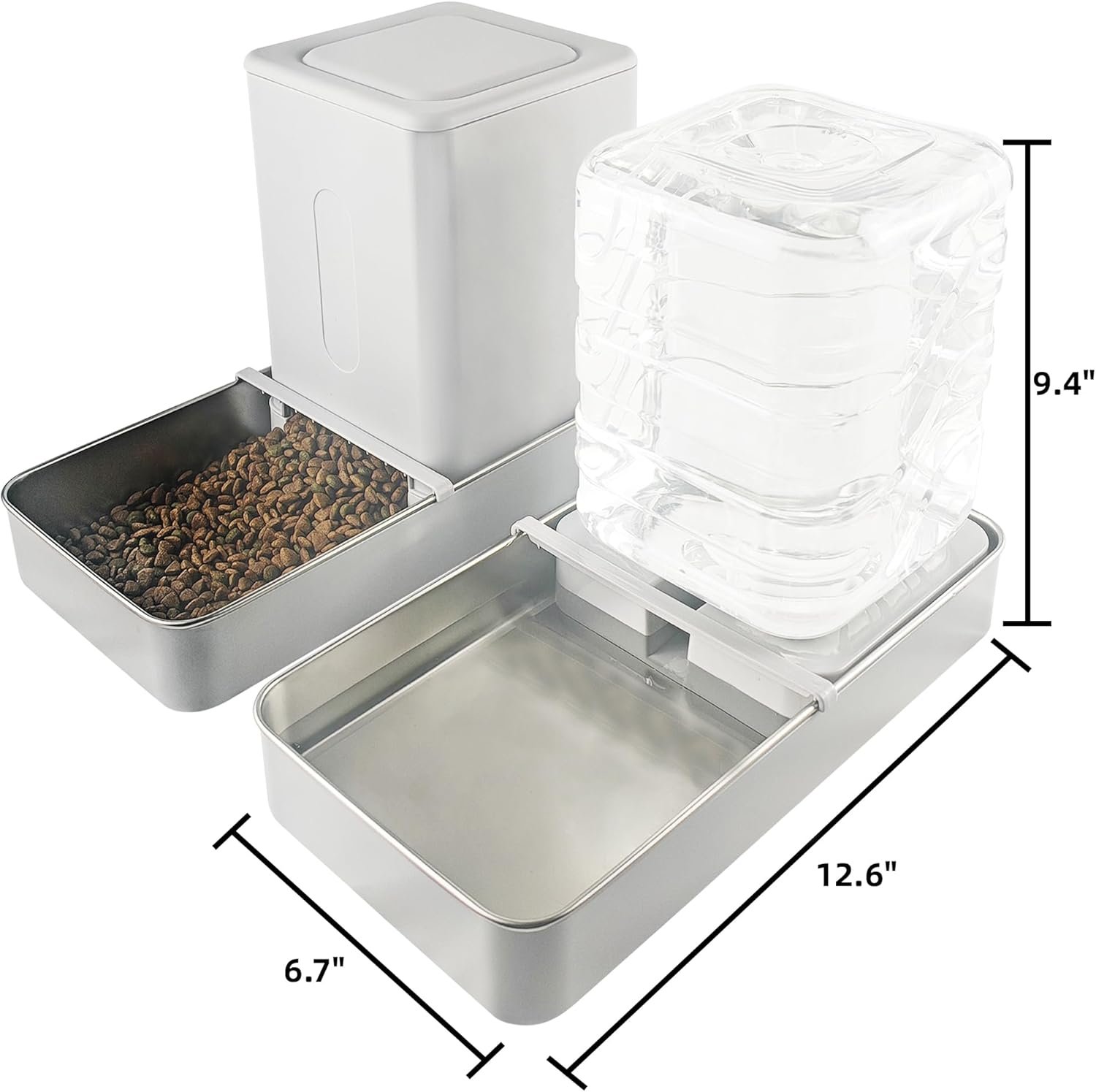 Automatische kattenvoer en waterdispenser met roestvrijstalen kom, zwaartekrachtvoedsel voor huisdieren en watervoeders, zwaartekrachtvoedselvoeder en waterer voor kleine middelgrote hondenpuppykitten (3.8L)