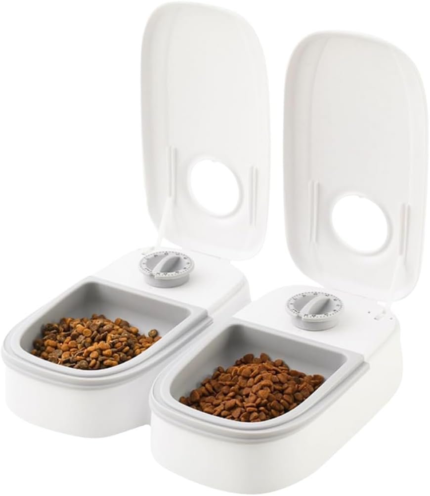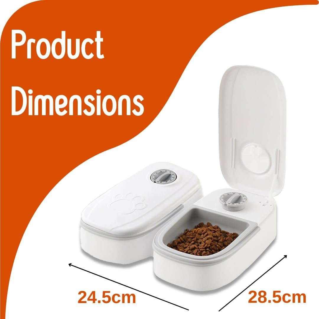 (2 maaltijdspliter): De getimede voeder met voedselbakken heeft een capaciteit van 350 ml en kan worden gebruikt met zowel droog als semi-gewet voedsel. De automatische kattenvoerder met timer maakt constante en exacte voedingsschema’s mogelijk.